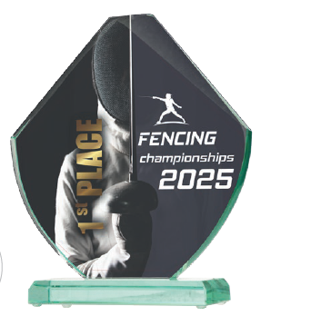 Waga: Solidna konstrukcja ze szkła o grubości 2 cm zapewnia odpowiednią wagę statuetki, co podkreśla jej wartość i jakość jako eleganckiego trofeum.