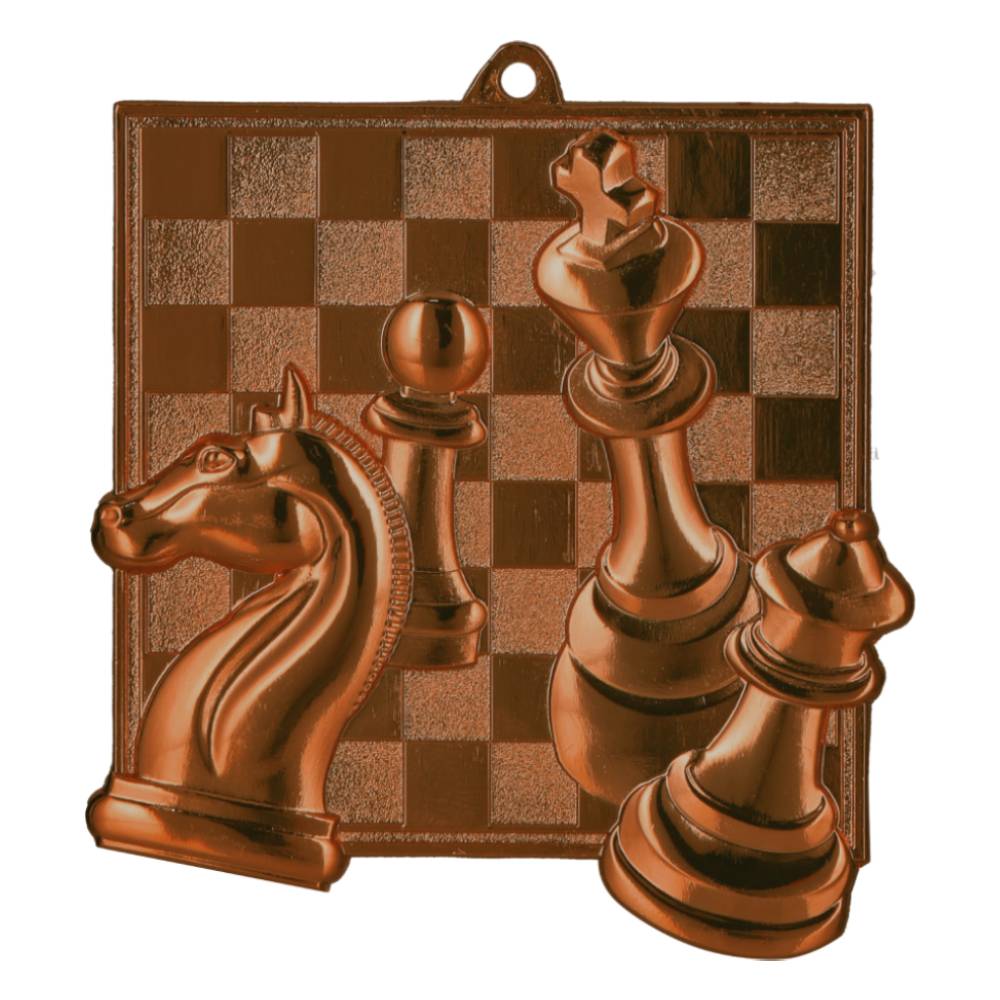 Ten wyjątkowy medal szachowy to połączenie klasyki z nowoczesnym wzornictwem. Awers przedstawia precyzyjnie odwzorowane pionki szachowe na tle dynamicznie zarysowanej szachownicy. Wyraźne detale i eleganckie, błyszczące wykończenie sprawiają, że trofeum prezentuje się niezwykle prestiżowo, idealnie oddając ducha królewskiej gry.