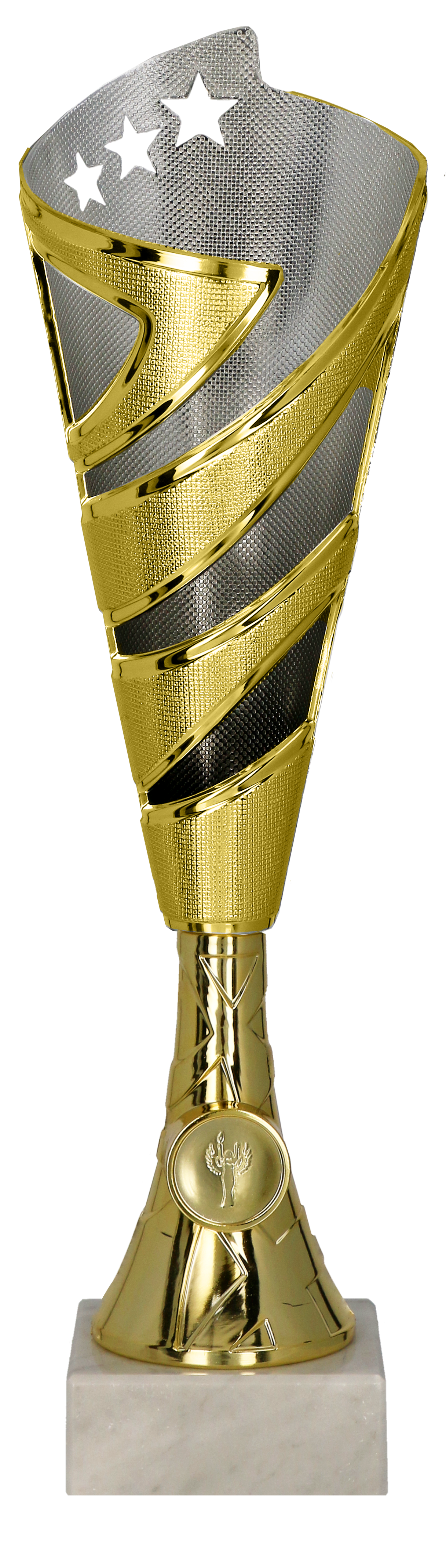Podkreśl prestiż swojego wydarzenia, wręczając ten elegancki puchar. Jego klasyczny design i staranne wykonanie sprawiają, że jest to idealna nagroda dla najbardziej wymagających klientów. Marmurowa podstawa i srebrne wykończenie kielicha dodają mu szyku i elegancji.
