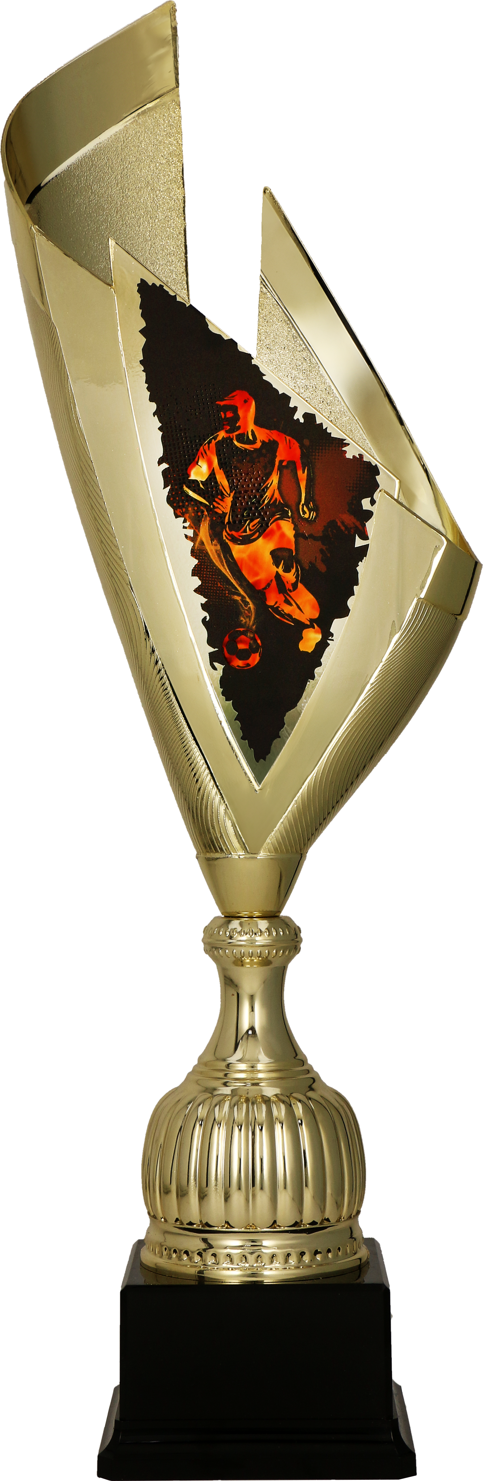 Nowoczesny puchar o smukłym wyglądzie z metalową tarczą piłkarza na plastikowej podstawie. Produkt marki Tryumf ™. Idealnie pasuje na nagrody w zawodach piłkarskich , czy indywidualnych nagród dla piłkarza . Kielich w kolorystyce złotej. Puchar robi duże wrażenie. Dla odbiorców, którzy cenią elegancje i styl.