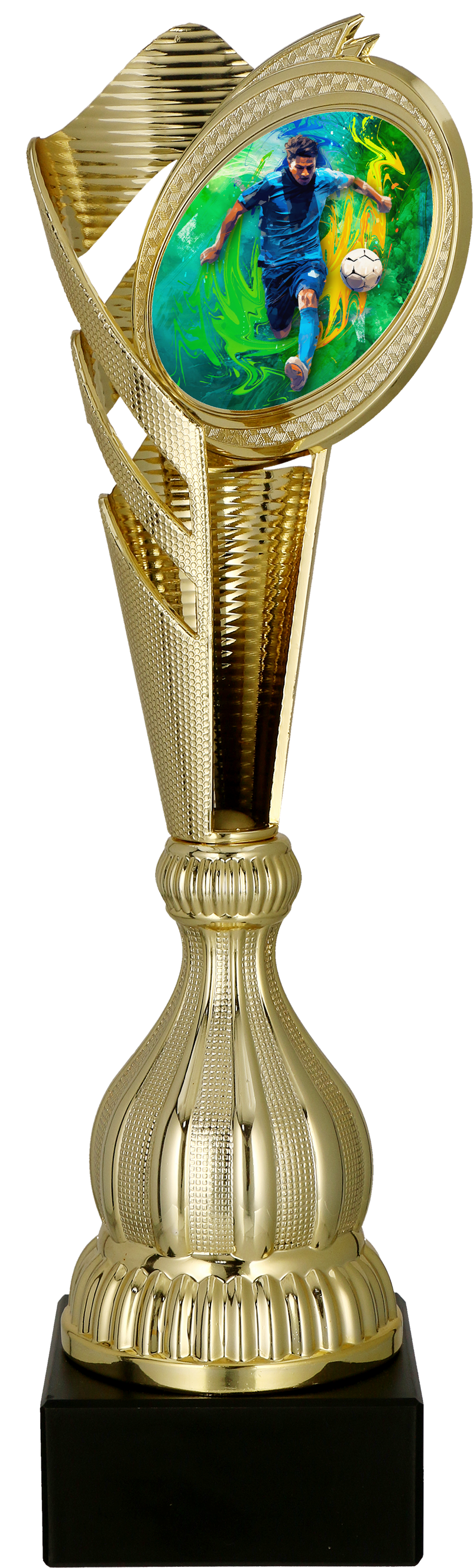 Idealnie pasuje na nagrody w zawodach piłkarskich, czy indywidualnych nagród. Kielich w kolorystyce złotej. Puchar robi duże wrażenie. Dla odbiorców, którzy cenią elegancje i styl.