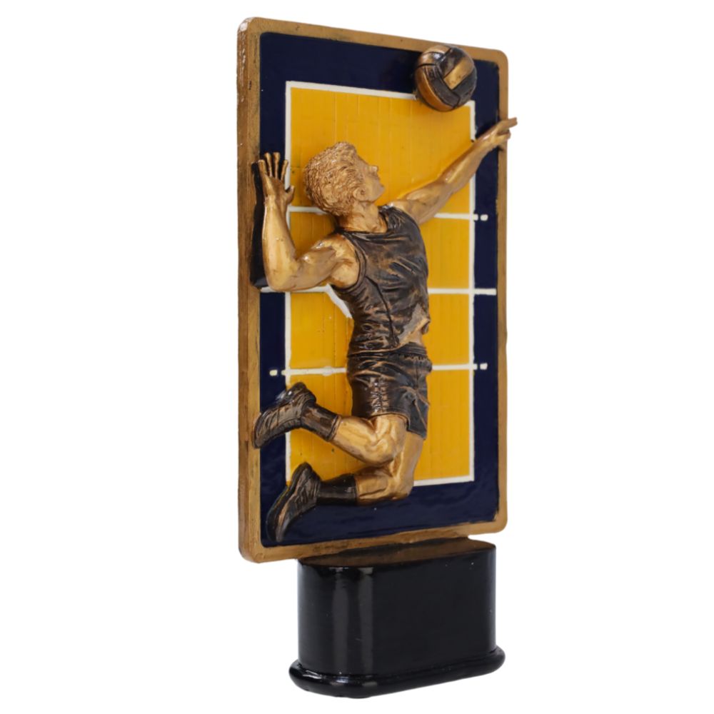 Materiały: Statuetka została wykonana z wysokiej jakości odlewu żywicznego o strukturze imitującej metal. Dzięki precyzyjnemu wykonaniu, trofeum posiada detale oddające dynamikę ruchu siatkarza, a całość osadzona jest na solidnym i stabilnym postumencie, co nadaje mu prestiżowy wygląd.
