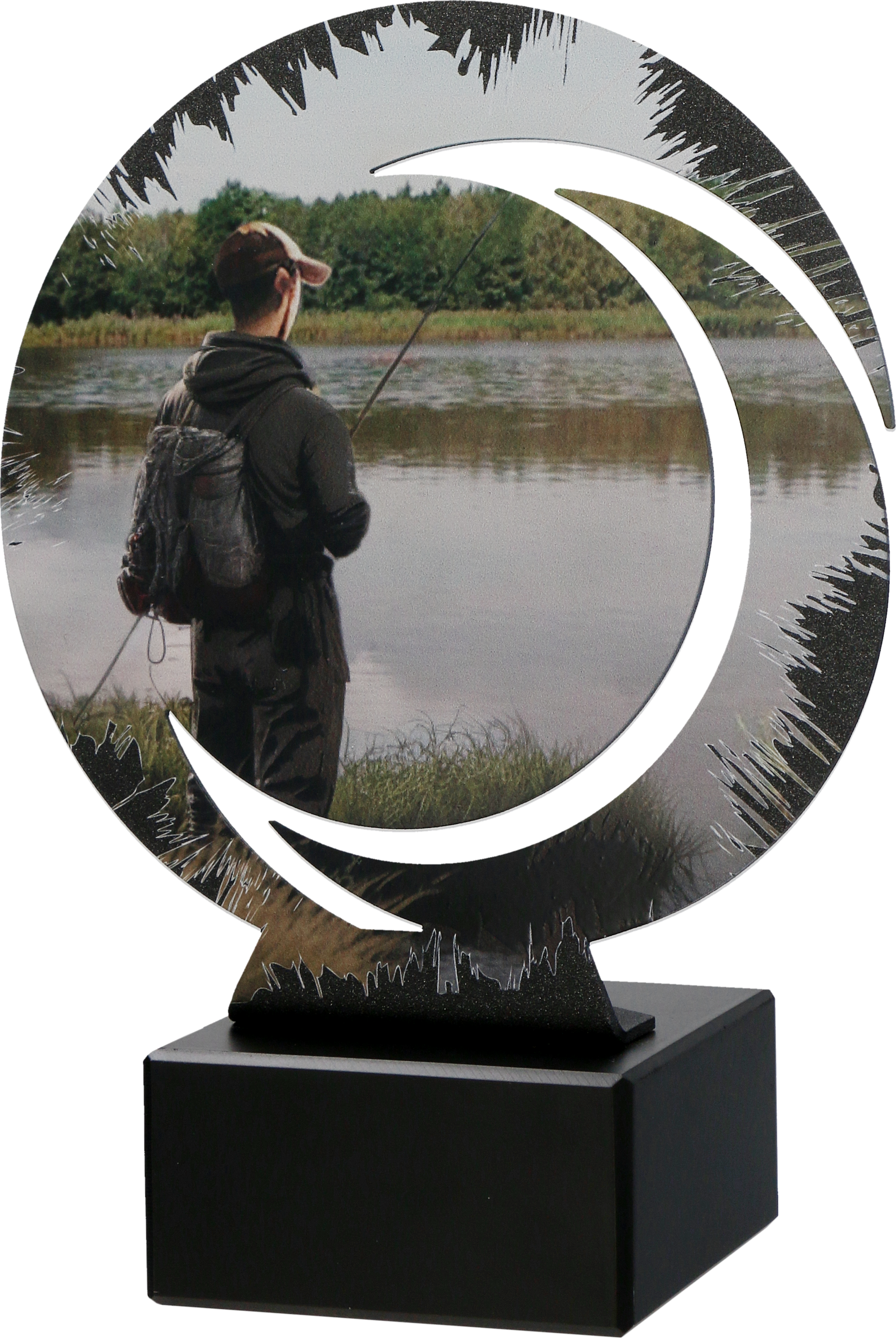 Nowoczesny statuetka wędkarstwo o nowoczesnym wyglądzie z metalową tarczą wędkarza na marmurowej podstawie. Produkt marki Tryumf ™. Idealnie pasuje na nagrody w zawodach wędkarskich, czy indywidualnych nagród. Kielich w kolorystyce złotej. Puchar robi duże wrażenie. Dla odbiorców, którzy cenią elegancje i styl.