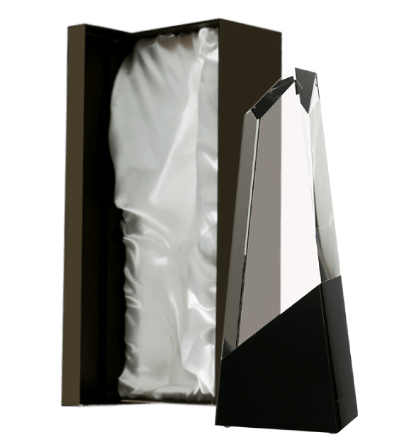 Design: Ta efektowna szklana statuetka wyróżnia się ponadczasowym i eleganckim designem, który doskonale komponuje się z różnorodnymi wydarzeniami i okazjami. Czysta forma szkła stanowi idealne tło dla personalizacji, umożliwiając stworzenie unikalnego i spersonalizowanego trofeum. Dostępna opcja grawerowania laserowego w kolorze Luxor Jet dodaje statuetce wyjątkowego, metalicznego połysku.
