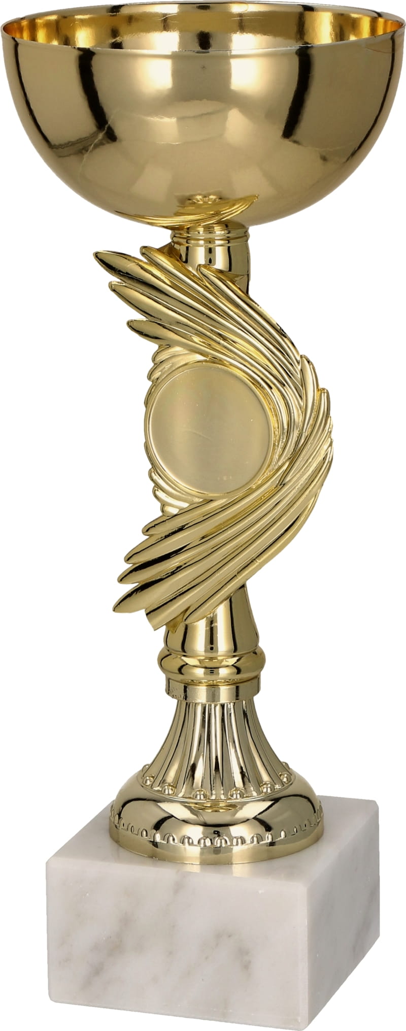 Materiały: To unikatowe trofeum 9031 to efektowne połączenie materiałów. Korpus pucharu wykonany jest z metalu w kolorze złotym, z dodatkiem elementów z trwałego tworzywa sztucznego. Osadzony jest na solidnej, marmurowej podstawie. Posiada miejsce na wklejkę o średnicy 25 mm. Idealny jako nagroda w konkursach, turniejach, a także jako wyróżnienie za osiągnięcia. Puchar metalowo-plastikowy to synonim oryginalności i prestiżu.